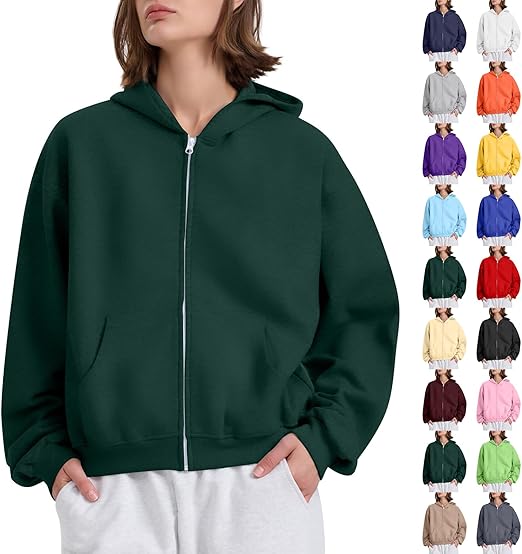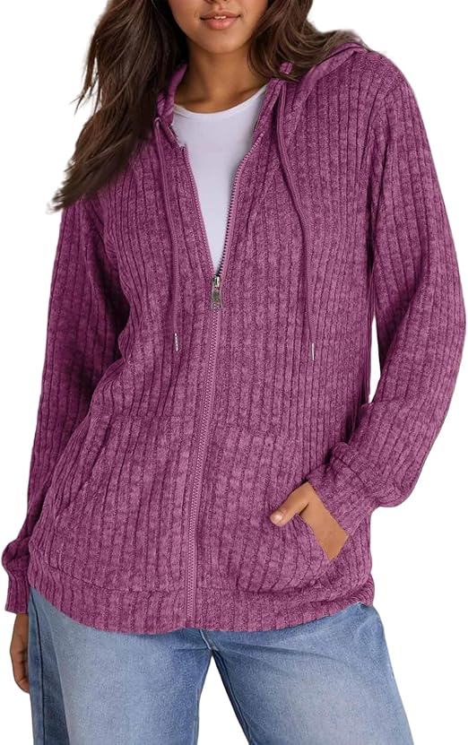 Zip Up Hoodie Women Lightweight Soft Comfy Workout Jackets Loose Casual Drawstring Hooded Sweatshirts with Pockets
