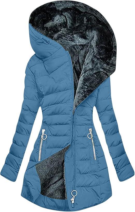 Women's Long Winter Puffer Jacket Thicken Warm Fleece Lined Hooded Quilted Puffer Coat Outwear