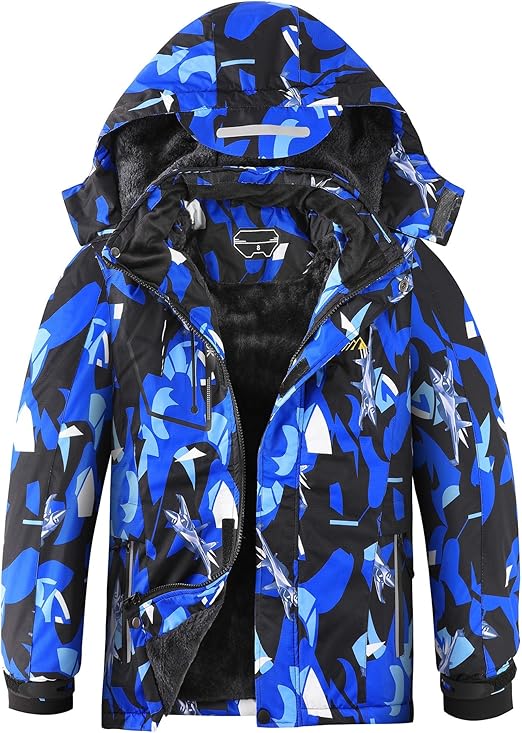 Boy's Waterproof Ski Jacket Warm Winter Snow Coat Kids Fleece Snowboarding Jackets Thick Hooded Windproof Coats